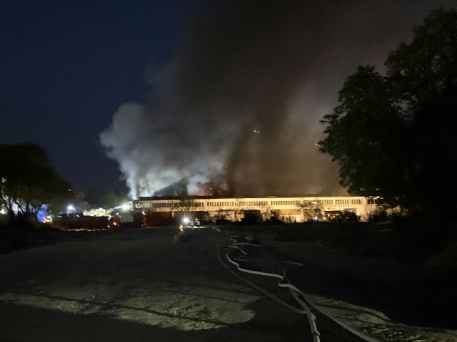 Großbrand in Schleswig-Holstein - Tausende Hühner kommen bei Brand um - Hühnerstall in Flammen - Photovoltaikanlage auf dem Dach des Gebäudes - Stall komplett zerstört - großer Feuerschein zu sehen