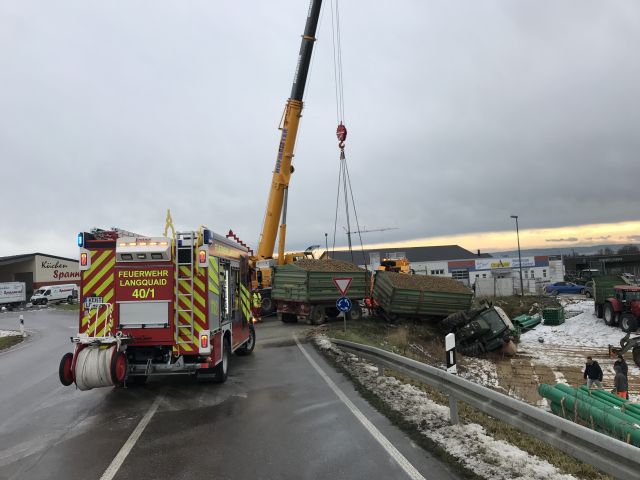 Am Montagmittag (11.12.2017) musste in der Ortschaft Langquaid (Lkr. Kelheim) eine aufwendige Bergungsaktion durchgeführt werden. Der Fahrer eines Bulldog-Gespanns verlor aufgrund einer Ölspur und... mehr...