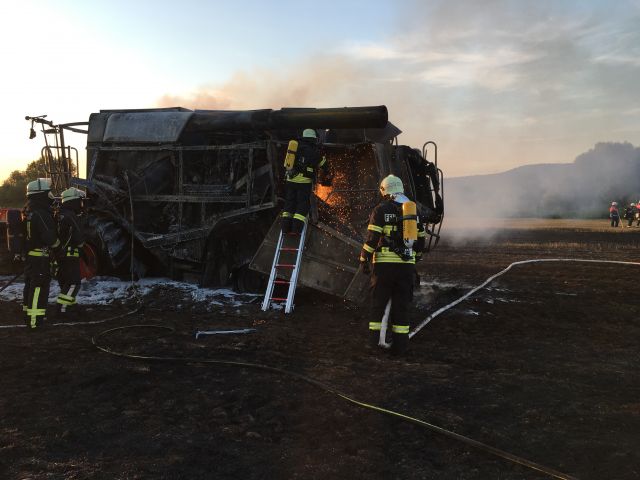 Alarm für die Feuerwehr am Montagabend (07.08.2017) in Strössendorf (Lkr. Lichtenfels). Während der Arbeit auf einem Feld zwischen Strössendorf und Weidnitz hatte ein Mähdrescher plötzlich... mehr...