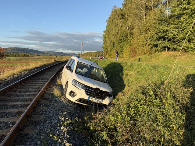 Auf der Kreisstraße FO2 zwischen Wiesenthau und Kirchehrenbach kam es am Montagabend (13.10.2025) zu einem schweren Verkehrsunfall, bei dem ein Auto nach einer Kollision in das angrenzende Gleisbett ... mehr...
