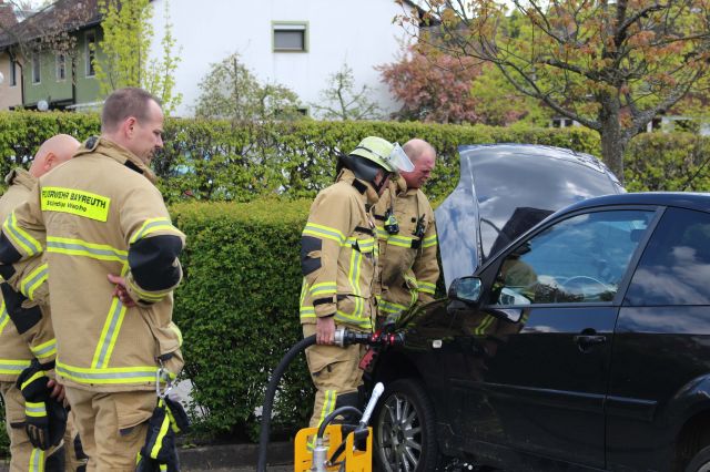 Am Freitagmittag (29.04.2016) fing aus noch ungeklärter Ursache ein Auto auf dem Parkplatz der Gedikom an zu brennen. Die Feuerwehr der ständigen Wache Bayreuth war schnell vor Ort und konnte... mehr...