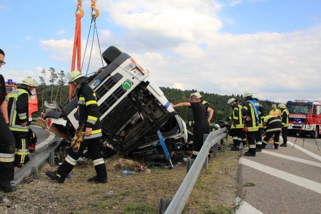 Ein 23jähriger rumänischer Lastwagenfahrer bog am 04.09.2015, gegen 14:30 Uhr, mit einem Lkw mit Tieflader einer Firma aus dem Landkreis Neumarkt i. d. Opf am Autobahnkreuz, von der BAB A 6 aus... mehr...