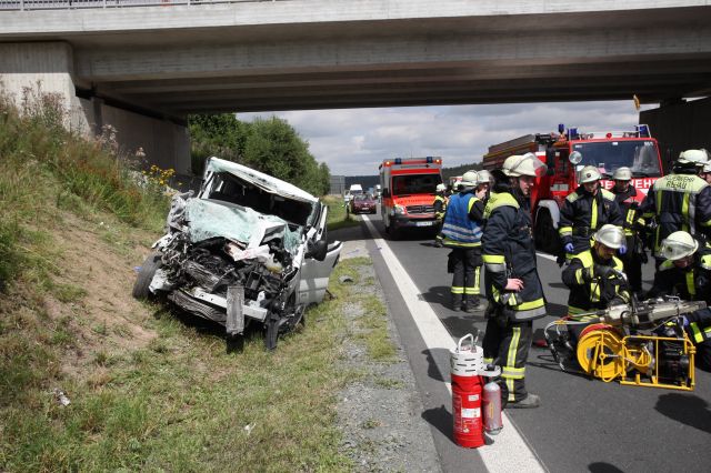 Am Freitagmittag (31.07.2015) kam es auf der A93 bei der Ausfahrtspur Rehau-Süd zu einem schweren Unfall. Nach erster Erkenntnis fuhr ein Kleintransporter auf einen Lkw auf. Dabei wurden mindestens... mehr...