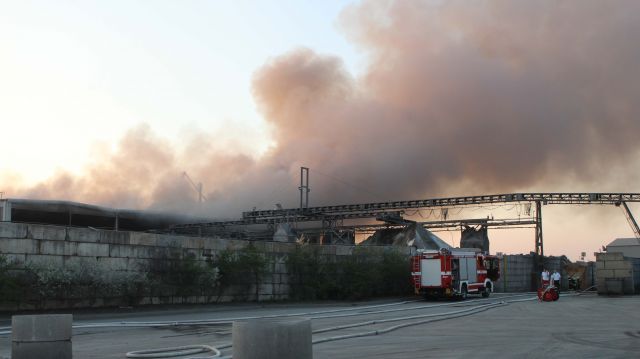 Einsatzstelle am Donnerstag (25.04.2013) an der Antwerpener Straße in Nürnberg. Aus noch ungeklärter Ursache brannte eine Maschine in einer Lagerhalle. Ersichtlich war eine große Rauchwolke über ... mehr...