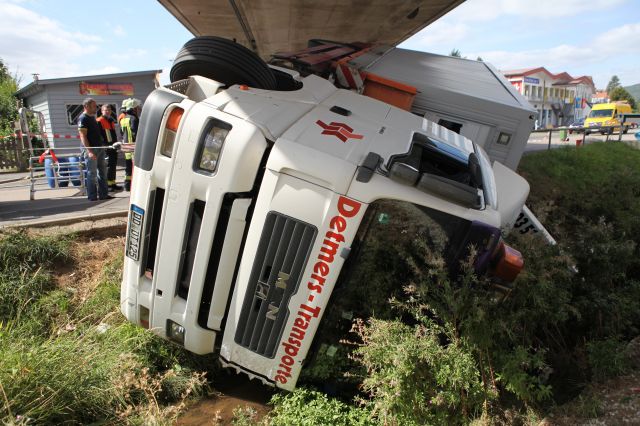 Am Donnerstag (06.09.2012) kam es in Hersbruck auf der Happurger Straße zu einem Verkehrsunfall. Ein Lkw mit Kranausleger krachte gegen eine Brücke und kippte um. Dabei wurde niemand verletzt. mehr...