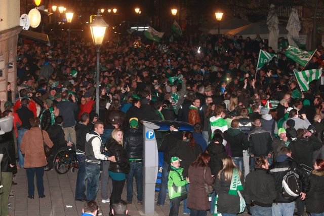 Am Montag (16.04.2012) steigt Greuther Fürth durch eine Niederlage von Düsseldorf in die erste Bundesliga auf. Fürther Fans feiern ausgelassen bis in die Morgenstunden. Fans feiern in der... mehr...