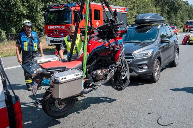 Redaktioneller Hinweis: Privatpersonen (Motorradfahrer) pixeln!Am Donnerstagabend (07.08.2025) kam es bei Steinbach bei Cadolzburg (Lkr. Fürth) zu einem Verkehrsunfall mit einer Motorradgruppe. Die... mehr...