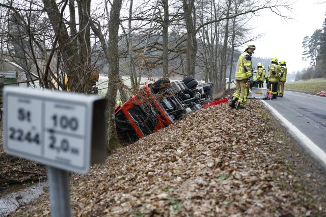 Zwischen Markt Erlbach und Kemmathen (Landkreis Neustadt an der Aisch) ist am Donnerstagvormittag (22.01.2026) ein Lastwagen von der Staatsstraße 2244 abgekommen und eine Böschung... mehr...