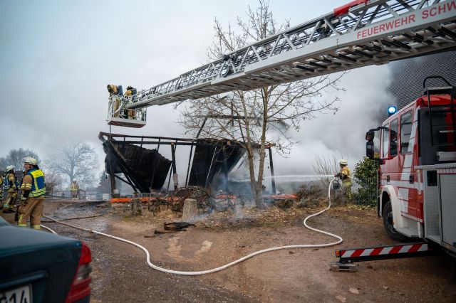 Brandis zu einem Brand in einer Lagerhalle einer ehemaligen Schweinemastanlage.