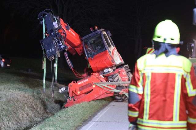 Ein Teleskopstapler geriet am Montagabend (15.03.2021) zwischen Hirschneuses und Neuhof an der Zenn (Lkr. Neustadt an der Aisch-Bad Windsheim) in den Graben. Das Fahrzeug geriet in Schieflage und... mehr...