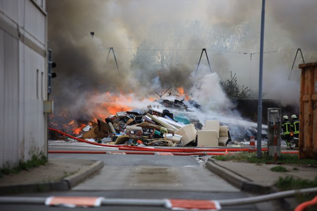 Eine dichte Rauchwolke stand am späten Sonntagvormittag (26.04.2020) Schkeuditz (Lkr. Nordsachsen). Auf einem Wertstoffhof brach dort ein Feuer aus. In der Folge brannten Holzpaletten und Müll... mehr...