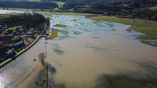 In Nordfranken suchte sich am Mittwoch (05.02.2020) das Hochwasser seinen Weg durch die Landschaft. An der Itz bei Busendorf, Mürsbach und Zaugendorf (Lkr. Bamberg) zeigt sich die Überflutung in... mehr...