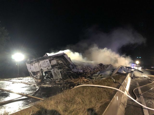 Rauchschwaden ziehen auch noch nach Stunden am Freitagmorgen (29.11.2019) über die B300 im schwäbischen Aichach (Lkr. Aichach-Friedberg). Denn die Flammen, die den 40-Tonner nach einem Unfall... mehr...