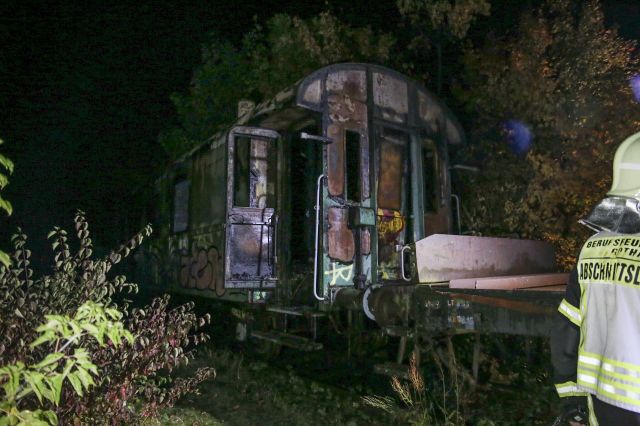 Einen besonders schwierigen Einsatz hatten die Einsatzkräfte der Feuerwehr am Dienstagabend (01.10.2019) in Gotha. Auf einem alten Bahngelände kam es zu einem Vollbrand eines alten Eisenbahnwagens. ... mehr...