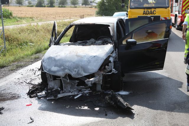 Am Dienstagabend (06.08.2019) kollidierten auf der Staatsstraße 2250 bei Neusitz (Lkr. Ansbach) vier Autos an einer roten Ampel bei stockendem Verkehr. Darauf brannte ein Auto aus. Zwei Personen... mehr...