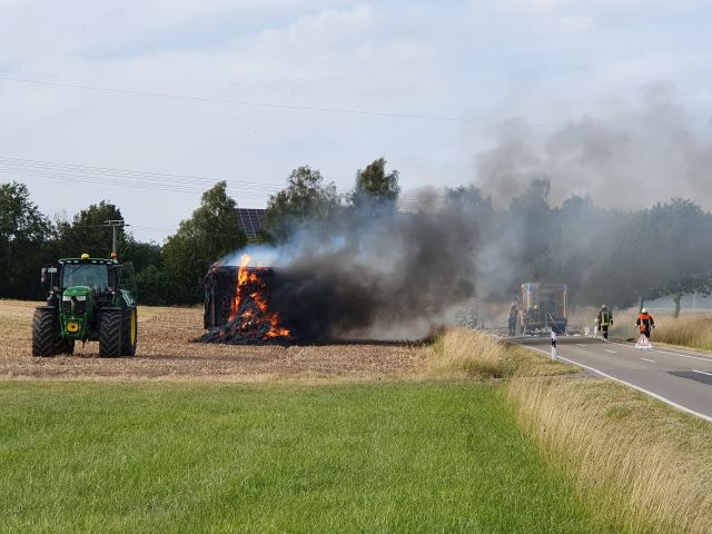 Aus noch ungeklärter Ursache ist am Donnerstagabend (18.07.2019) bei Windelsbach (Lkr. Ansbach) ein Heuanhänger an einem Traktor in Brand geraten. Der Landwirt bemerkte schon während der Fahrt die ... mehr...