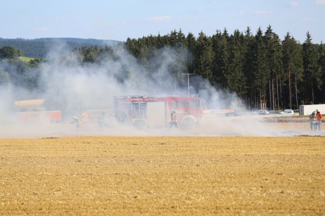 Auf einem Stoppelacker an der A9 bei Gefrees (Lkr. Bayreuth) brach am frühen Dienstagabend (16.07.2019) ein Brand aus. Obwohl die Feuerwehr direkt in der Nähe bei einem Verkehrsunfall auf der... mehr...
