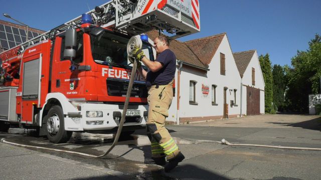 Am Mittwochabend (03.07.2019) drohte in der Dachrinne eines Wohnhauses in Stein (Lkr. Fürth) Dreck Feuer zu fangen. Die Feuerwehr rückte mit einer Drehleiter an. mehr...