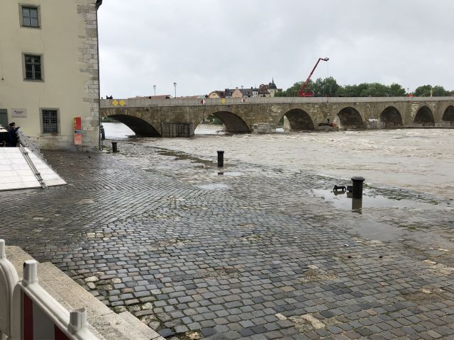 Land unter auch in Regensburg: In der Hauptstadt der Oberpfalz trat am Mittwoch (22.05.2019) die Donau über ihre Ufer. Allerdings war die Lage am Mittag noch entspannt, laut Aussagen der Stadt liegt ... mehr...