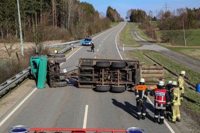 Ein spektakulärer Verkehrsunfall endete am Freitagnachmittag (29.03.2019) bei Pirk (Lkr. Tirschenreuth) glimpflich. Der Fahrer eines Unimogs mit Anhänger transportierte Holzstämme und war von... mehr...