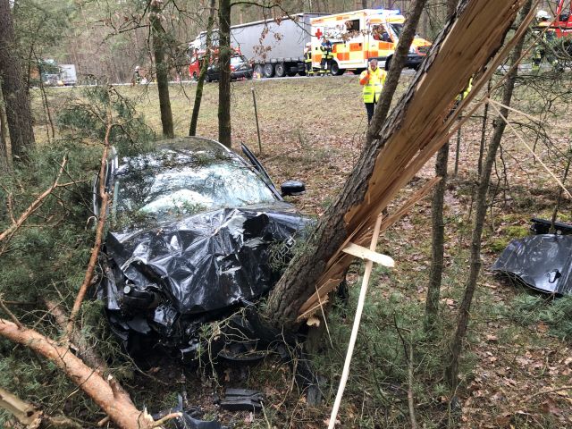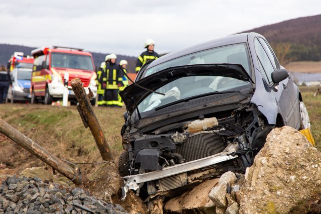 Ein Kleinwagen prallte am Freitagnachmittag (08.02.2019) bei Sülzfeld (Lkr.
