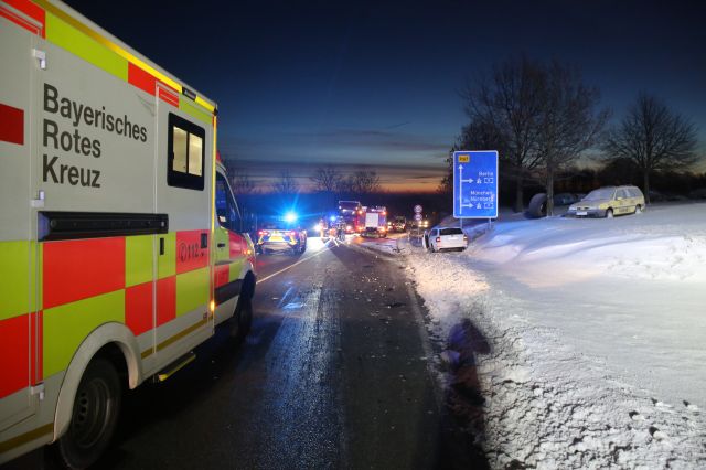 Am Mittwochmorgen (30.01.2019) kollidieren in Berg (Lkr. Hof) zwischen der Autobahnauffahrt zur A9 und dem Autohof zwei Autos frontal. Beide Fahrer mussten vom Rettungsdienst betreut werden, einer... mehr...