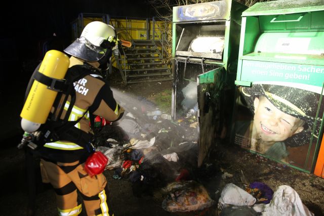 Am späten Silvesterabend (31.12.2018) wurde die Feuerwehr Rednitzhembach (Lkr. Roth) alarmiert. An der Einfahrt zur brannten zwei Kleidercontainer. Die sich in Vollbrand befindlichen Metallcontainer ... mehr...