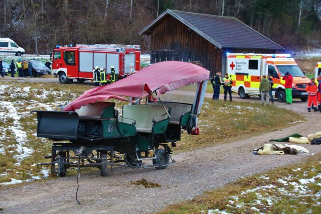 Drama am Nachmittag des 1. Weihnachtstages (25.12.2018) im Ostallgäu. Zwei mit jeweils zehn Personen, darunter zahlreichen Kindern, besetzte Pferdekutschen waren in Kappel bei Pfronten unterwegs.... mehr...
