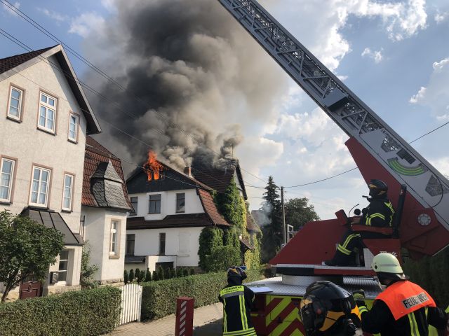 Dichte Rauchschwaden stiegen am Freitagnachmittag (03.08.2018) über einem Wohnhaus in Hildburghausen auf. Ein Einfamilienhaus im Ortskern war in in Flammen aufgegangen. Drei Nachbarn saßen gerade... mehr...