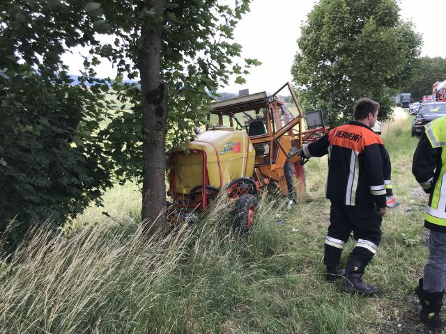 (29.06.2018) in Eisfeld (Lkr. Hildburghausen). Ein Opel Fahrer war mit seinem Fahrzeug vermutlich zu